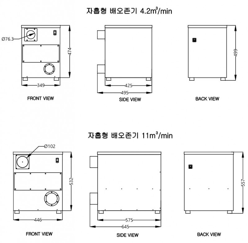 - 처리 풍량 : 4.2m3/min, 11m3/min
